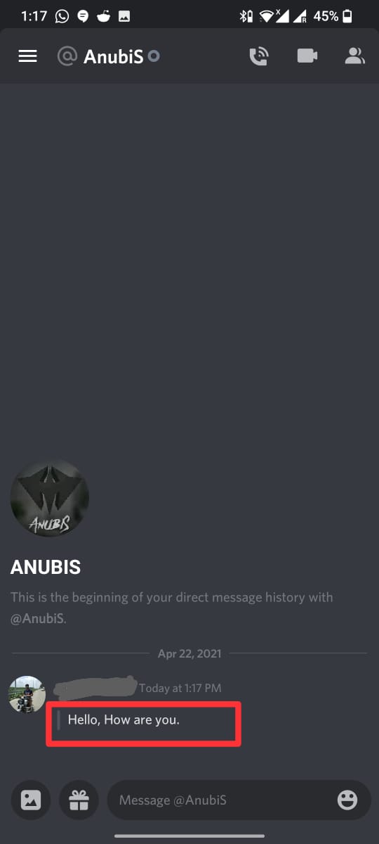 This is the newest method that was added to Discord last year. This is also the easiest way to quote a text on Discord. Now there are two ways to use it. Here we are using our mobile phone for the process, but this method works on all devices for which the Discord app is available.