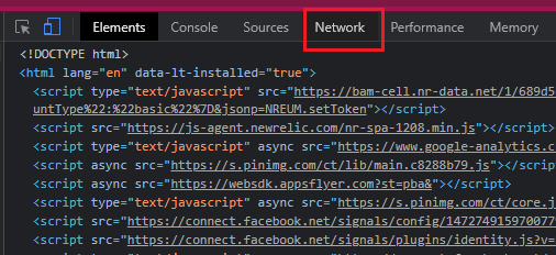 Once you are in the inspect menu, you will notice a number of options such as Elements, Console, Sources, Network, etc. as you can see in the screenshot below.