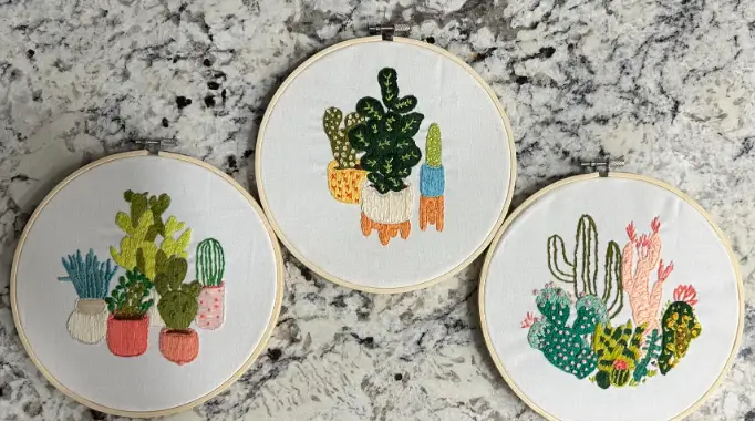 Amazon user’s review – “I had never done embroidery before, but by the time I finished the third piece, I felt like a strong novice. Good quality thread and canvas, I *did* get two needles with each piece (six total). Yes, the ring is plastic, but it worked as intended, so I’m not really bent out of shape about it not being bamboo. Would recommend, great value for money.”